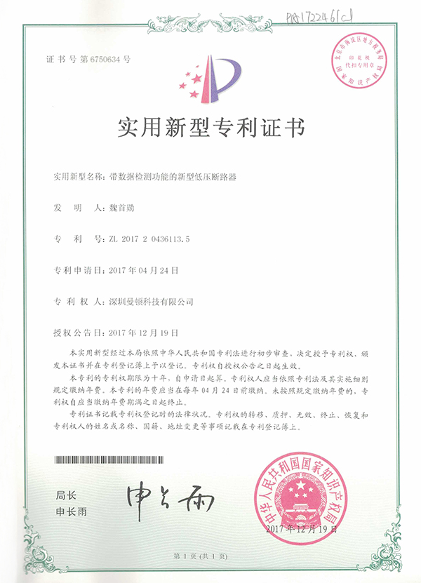 上一篇:适用新型-新型断路器泄电检测装置及低压断路器证书