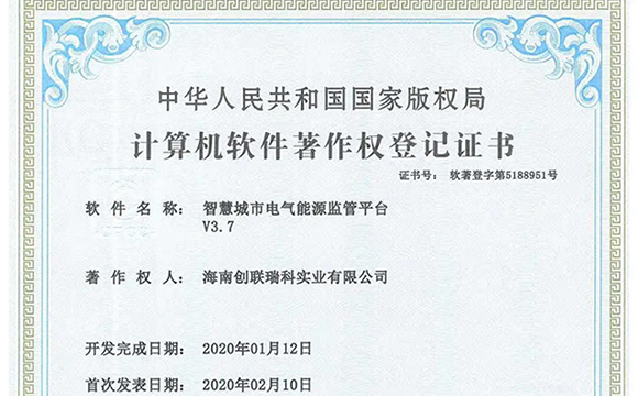 OETY欧亿集团·海南创联瑞科实业有限公司 获国家盘算机软件著作权资质3类证书 OETY欧亿|让·电·不·再·有·伤·害 智慧都会电气能源羁系平台 智慧都会(SmartCity...