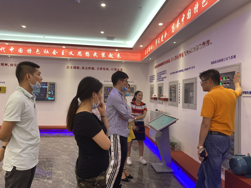 碧桂园采购部认真人一行相继走访了OETY欧亿集团的车间及智能产品展厅。。。。。。王金鹏董事长向碧桂园一行人演示了现行电气系统与智慧数字电气系统的比照,,,,,测试古板打火与智慧打火的开关迅速反应,,,,,古板过欠压与智慧过欠压反应比照,,,,,古板消防双速风机使用智慧开关后控制比照。。。。。。